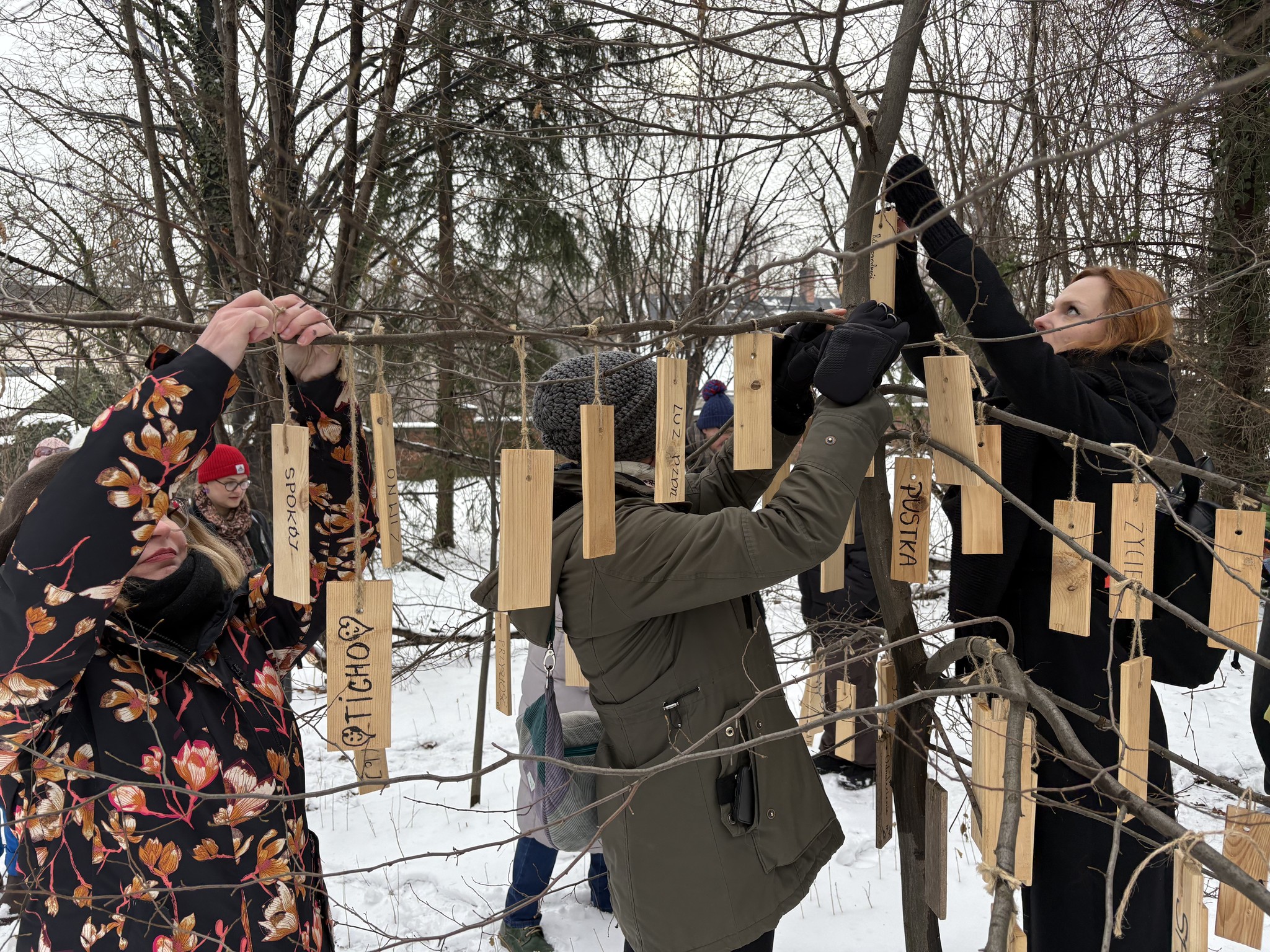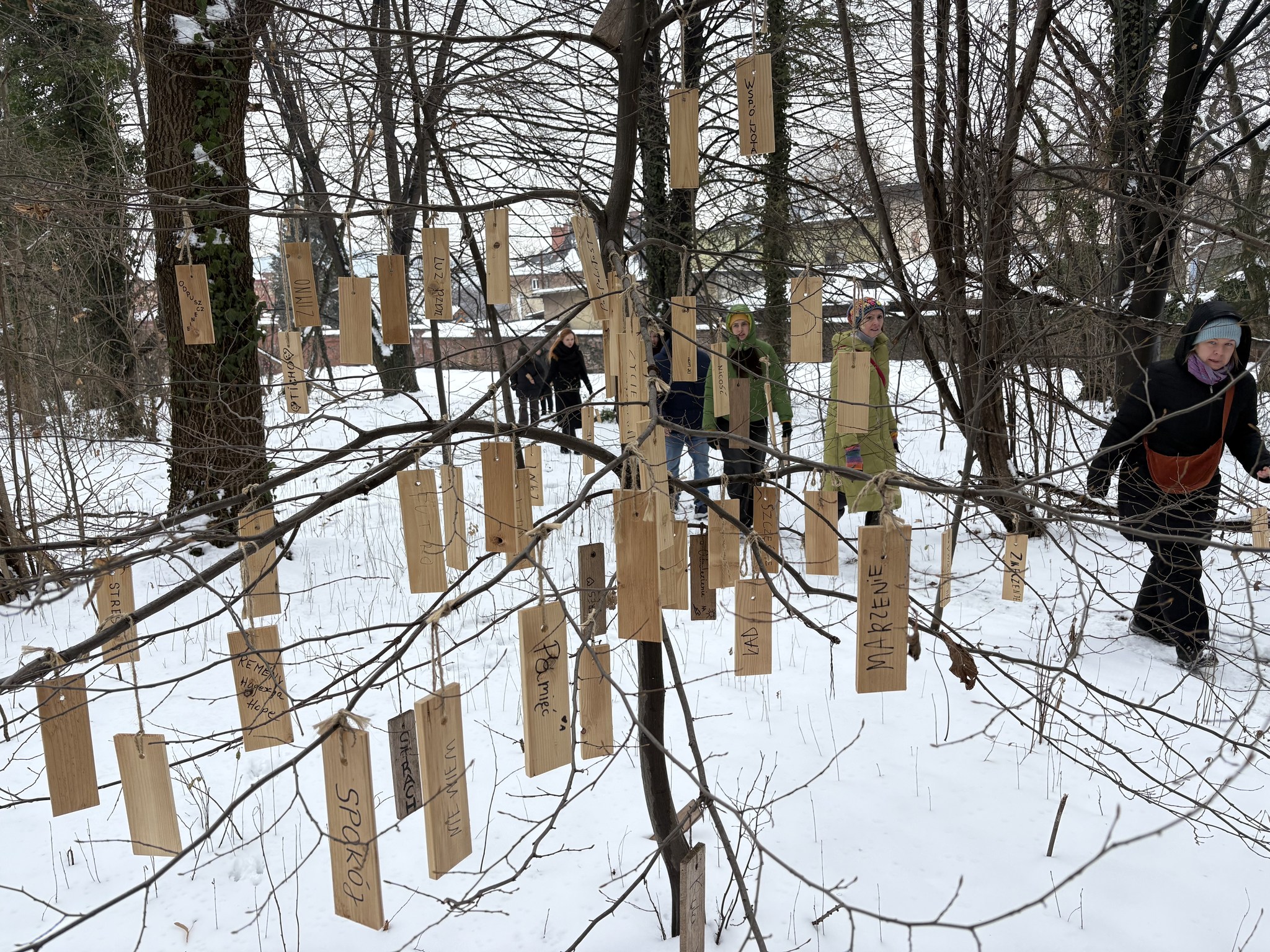 Do Warszawy wracaliśmy z echem tego doświadczenia – z siłą, jaką daje krąg spotkania, ale też z zachwycającymi obrazami, takimi jak portal pomiędzy cmentarzem a ogrodem, zawieszone w naturze haiku czy drzewa słów, do których również dołożyliśmy własne intencje. Dzięki uprzejmości gospodarzy mogliśmy także wejść do zabytkowego domu przedpogrzebowego z wspaniale zachowanymi polichromiami. Jesteśmy pod ogromnym wrażeniem determinacji, z jaką udało się zrealizować pomysł na Tajemniczy Ogród. Jako praktycy i praktyczki kultury doceniamy w szczególności współpracę ponad podziałami i na przekór schematom. Nasze spotkanie, choć krótkie, było jednocześnie niezwykle mocne i pozostające w pamięci”.