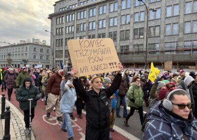 Wielki marsz dla zwierząt, apelujący o odrzucenie weta prezydenta Karola Nawrockiego w sprawie tzw. ustawy łańcuchowej, który odbył się 14 grudnia w Warszawie miał kilka znaczeń dla przyszłości działań na rzecz zwierząt w Polsce. Pomimo dużej frekwencji, apeli obywatelek i obywateli do polityków, badań opinii publicznej, Sejm w głosowaniu 17 grudnia nie zdołał odrzucić weta. Nowelizacja ustawy o ochronie zwierząt, którą zawetował prezydent zakładała zakaz trzymania psów na uwięzi i wprowadzała przepisy dotyczące trzymania psów w kojcach. To nie tylko wstyd i hańba dla tych co trzymają psy na łańcuchach ale także dla części naszej tak zwanej „klasy politycznej”.